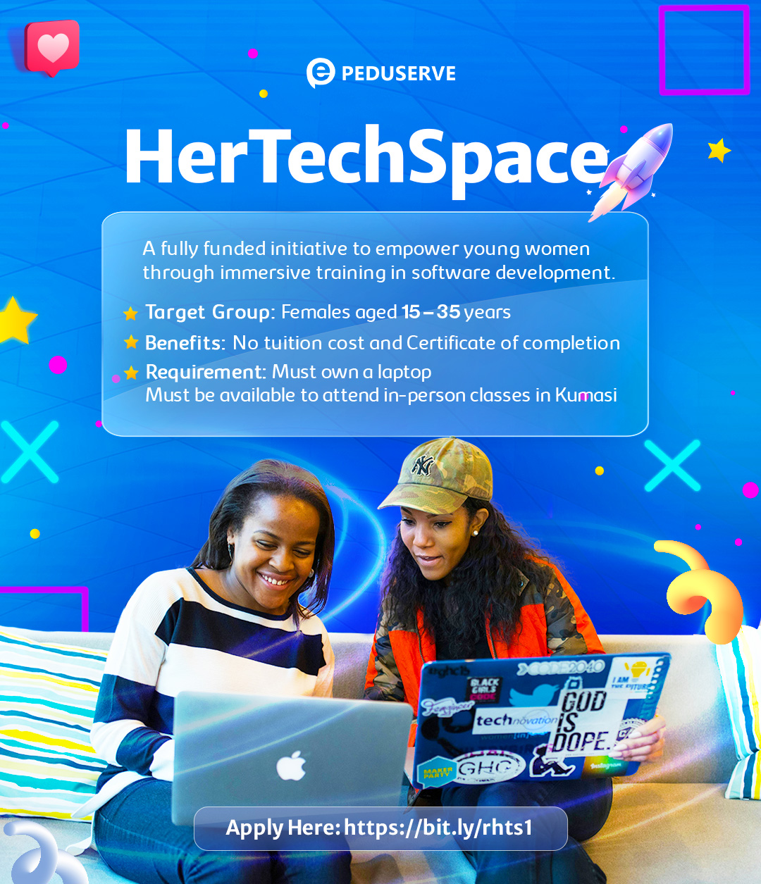 🚀 Peduserve is excited to launch HerTechSpace and welcomes young women to seize this opportunity to start their tech journey. Together, we are building a future where women confidently lead and innovate in the digital age.
